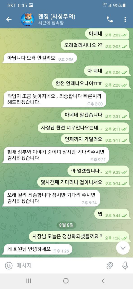 ![]() ![]() ![]() ![]() ![]() ![]() ![]() ![]() ![]() ![]() ※ 멘징 절대 이용 금지 ※ 입금 ㅇ 환전 x 출금 버튼 없는 사이트 안녕하세요 저 진짜 억울해서 글 올려봅니다 8/7일 환전 나온다고 해서 기달리고 있었는데 무슨 코드에 양빵 들어왔다고 저도 환전 안나오네요 말이 아예 안통합니다 진짜 억울해 뒤질거 같습니다 멘징 이용중이시면 출금 버튼 없습니다 출금 누르면 그냥 사정없이 환전 대기만 시킵니다 진짜 억울해서 글올리는겁니다 환전장 문제라고 말해놓고 먹튀 하는 악질 입니다 절대 이용하지말아주세요 멘징 이용 금지 멘징 이용 금지 |