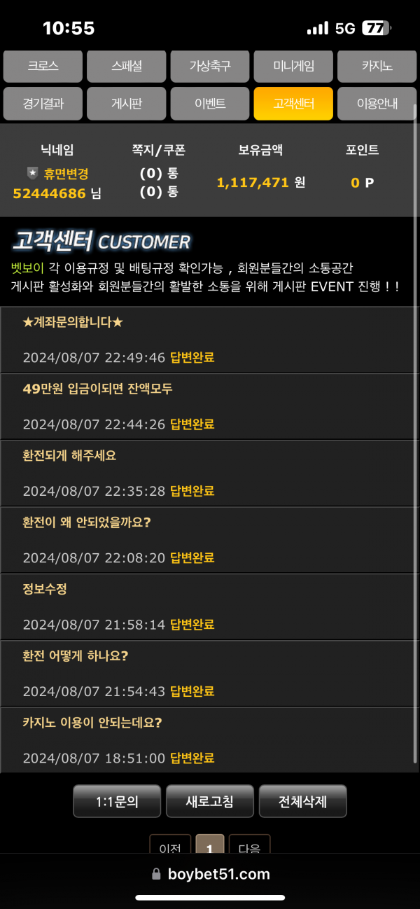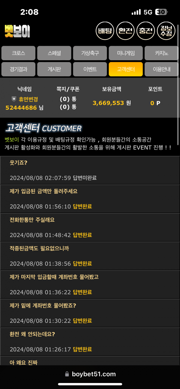 환전신청시 보유금액에 50프로를 입금하라고 유도하고 환전업체에 인증이 필요한 입금이다 이렇게 이야기하고 입금이 되고나니 예금주이름으로 말고 사이트에 등록된 본인 계좌번호를 입금자이름에다 적어 다시 보유금액에 50프로를 입금해라 입금하고나니 또 본인이름으로 입금되야된다 이런식으로 보유금액 늘려가며 계속 보유금액에 50프로를 입금 하라고 함