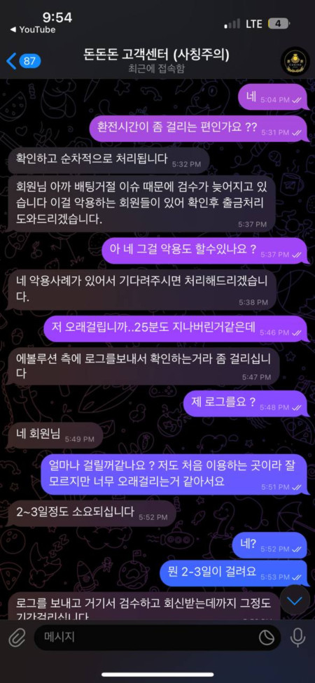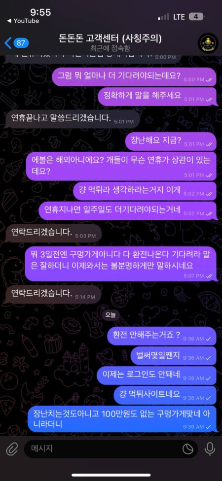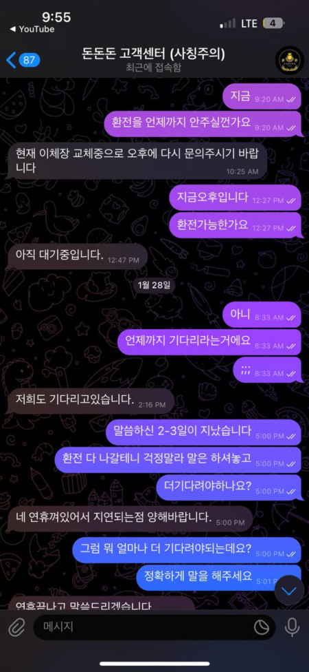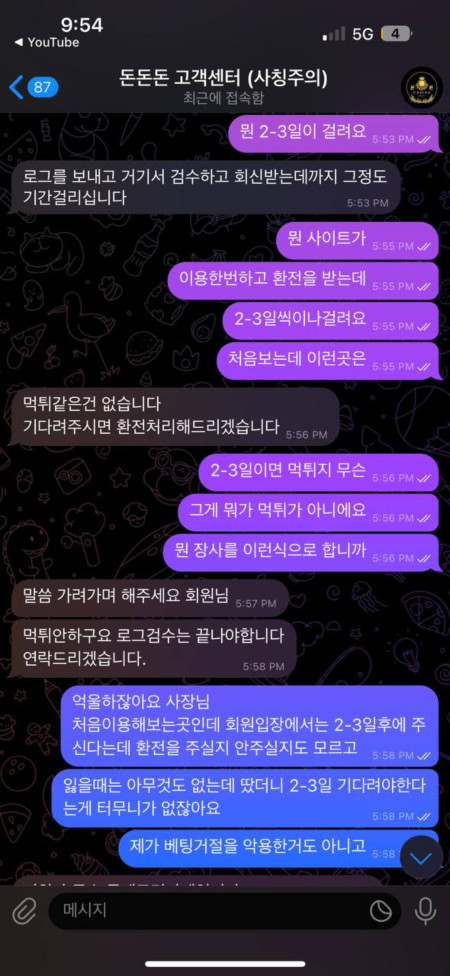 텔레그램 홍보방/정보공유방 에서 돈돈돈이라는 돈냄새풀풀 나는 사이트를 보고 가입해서 30충전하고 100환전을 눌렀는데 좆밥 구멍가게 속옷가게 냄새였나봅니다